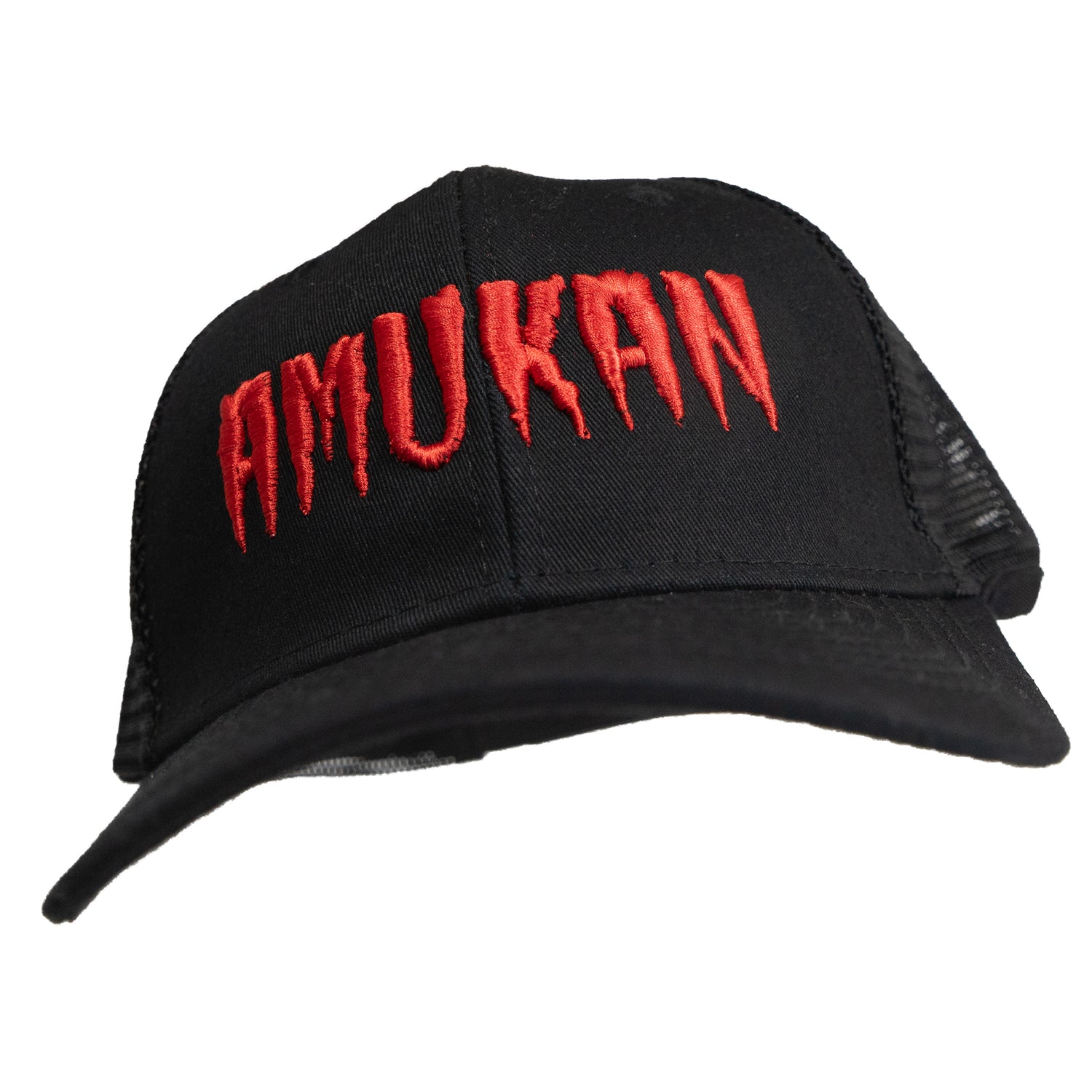 Gorro ajustable con malla color negro y frente negro con bordado 3D color rojo.