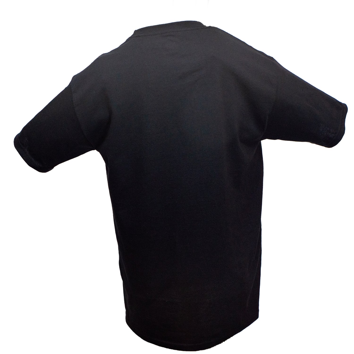 Polera negra manga corta con corte recto, cuello redondo con estampado delantero.